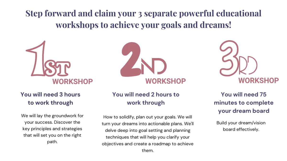 This 3 part workshop is more than a learning opportunity, it's an investment in your aspirations, a commitment to your vision, and a step towards turning your dreams into achievements.